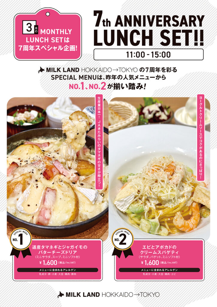 3月の北海道の牛乳・乳製品をたっぷり使ったマンスリーランチセット!