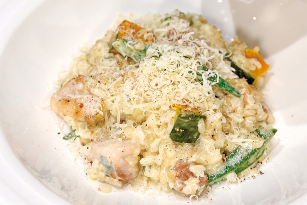 カボチャと鶏肉のブルーチーズ香る濃厚リゾット風
